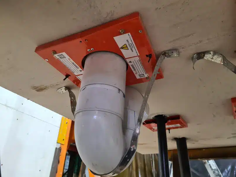 The BladeRUNNER incorporates a spring-loaded mechanism loaded with intumescent that can be applied underneath the slab to rectify the incorrect casted-in collar. The intumescent material expands when exposed to high temperatures, creating a seal around the penetration that helps prevent the spread of fire and smoke. This ensures that the building remains safe in the event of a fire and reduces the risk of damage to property and loss of life.