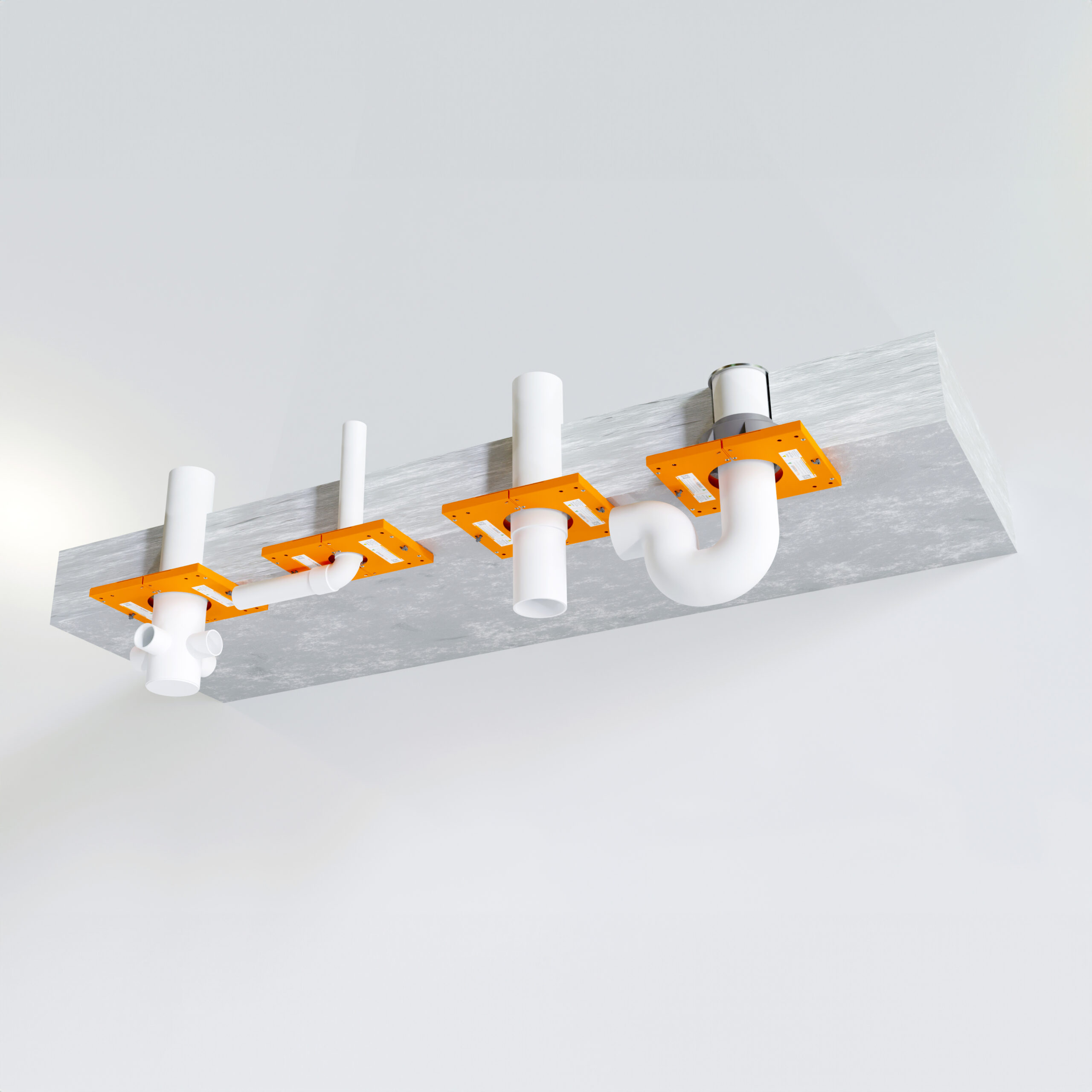 Retrofit Floor Waste and Stack Fire Collar – Fire tested to AS1530.4, The Trafalgar BladeRUNNER retrofit Floor Waste fire collars are tested for PVC pipe materials connected to P-traps or elbows directly underneath the slab for the following: